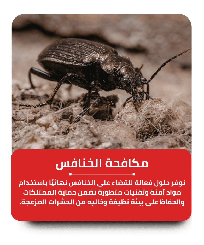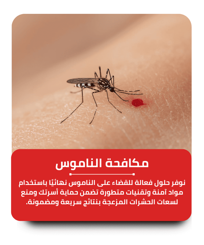 فريقنا المتخصص جاهز للتدخل فورًا في أي محافظة. نستخدم أحدث التقنيات الأوروبية ومواد مكافحة الآفات المعتمدة لضمان بيئة نظيفة وخالية من الحشرات.